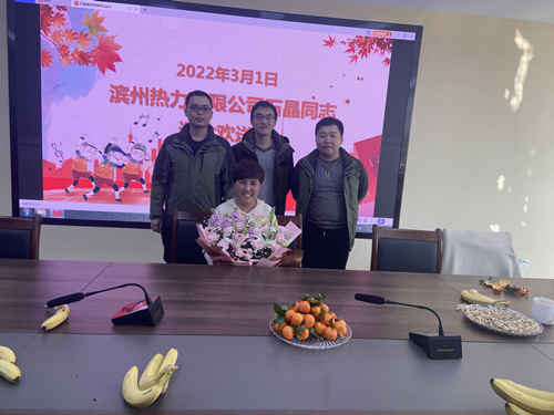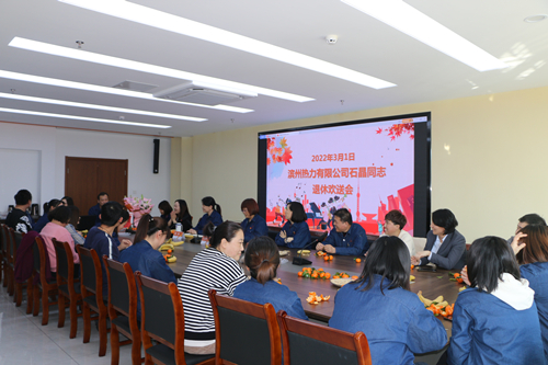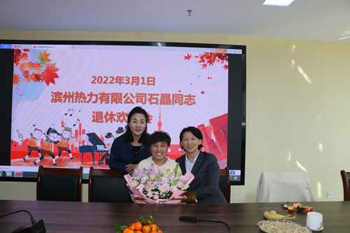 2022年3月1日下午,滨州热力有限公司为退休职工石晶举办欢送会。欢送会在公司工会主席蔺静主持下召开。滨州热力有限公司党委书记、董事长、总经理王岩芹,党委委员、副总经理王福华先后为石晶送上祝福,她们称石晶同志自2011年入职以来,兢兢业业、无私奉献,以热力人崇高的使命感和责任感为公司的发展贡献力量,祝愿她退休后的生活同样精彩,记得常回“家”看看。