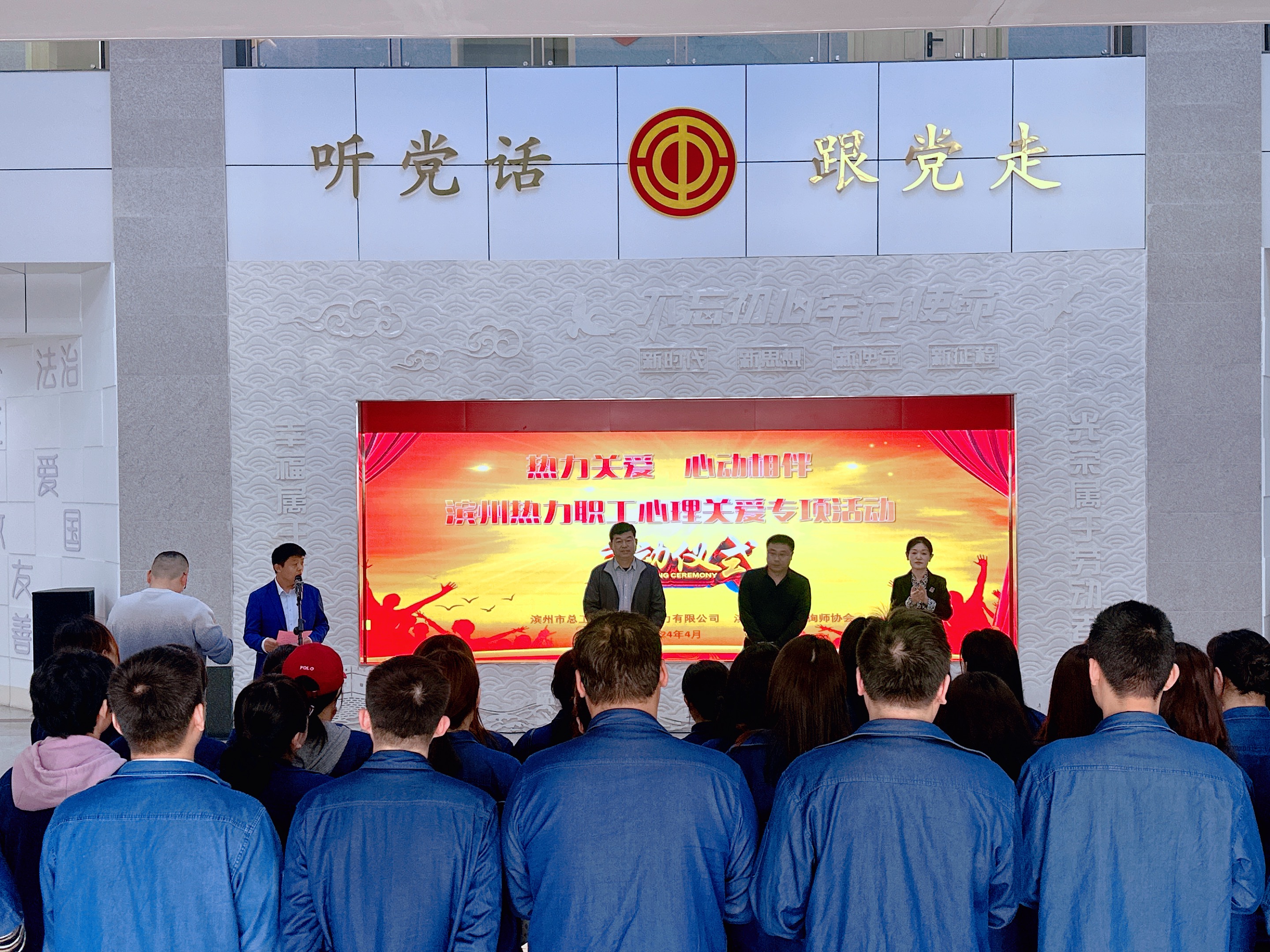 4月15日,滨州热力有限公司组织310余名供热职工走进市职工心理关爱中心,开展为期5天、7个批次的“热力关爱·心动相伴”心理关爱活动。市总工会党组成员、四级调研员鲍永翔,市公用事业集团有限公司党委副书记,热力公司党委书记、执行董事、总经理姜锡朋出席活动启动仪式,并致辞。