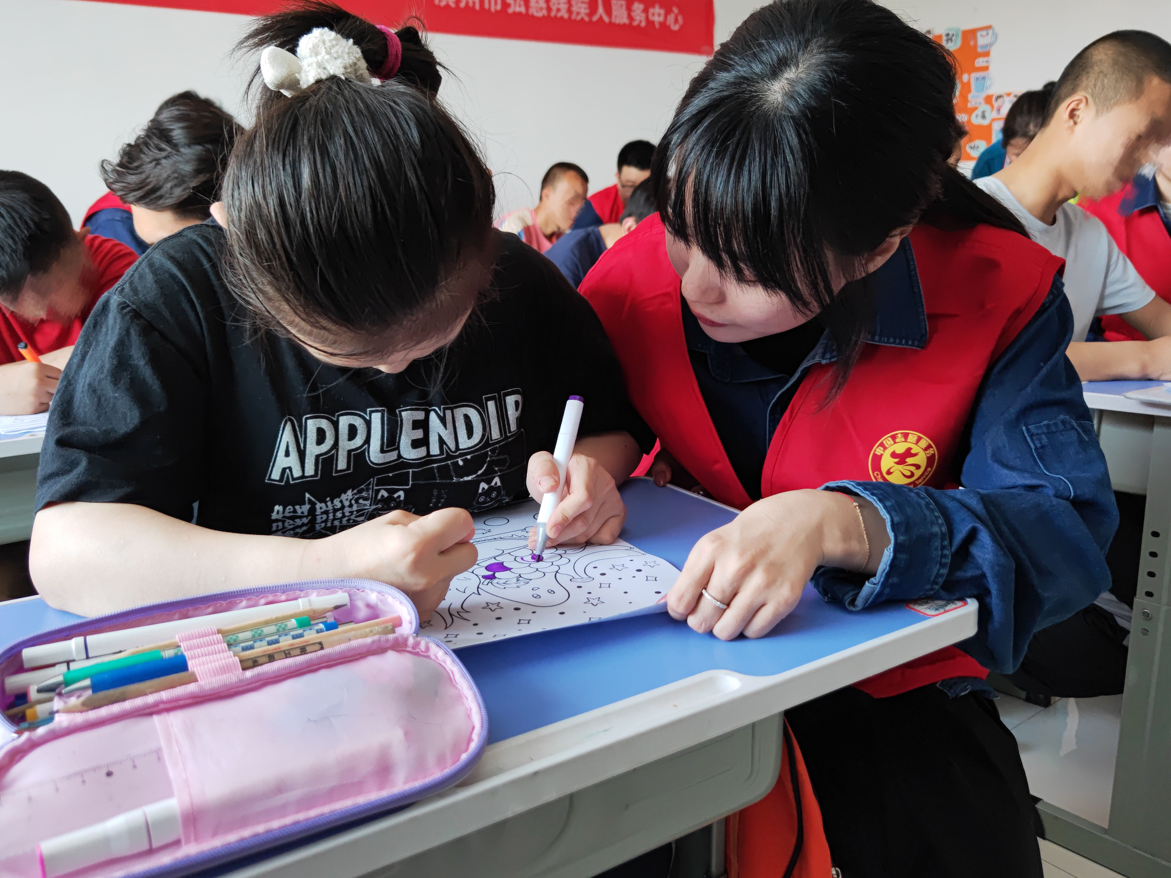 青年职工们带领着这群特殊的孩子涂鸦、画画,共同完成一幅幅属于自己的作品,五颜六色的画笔勾勒出孩子眼里的大千世界,对于这群特殊孩子来说,无声的陪伴比语言的交流更有意义。 以爱为桨,伴其远航。此次慰问活动送去了热力人对孩子们的一份浓浓爱心。青年职工也将时刻牢记自己的责任、使命与担当,为社会进步、国家发展贡献自己的青春力量!